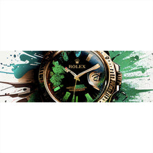 • Lade das Bild in den Galerie-Viewer, Aluminiumbild Luxus Uhr Pop Art Grün Abstrakt Panorama