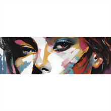 Auf der Suche nach einem ausgefallenen Wandbild als Leinwandbild? Das Motiv Frauengesicht in abstrakter Kunst im Panorama gefällt dir und du hast nach Wandbildern mit den Wörtern Abstrakt, Portrait, Frau, Model, Augen, Schönheit und Frauengesicht gesucht? Dann ist dieses Leinwandbild in der Farbe Bunt genau das richtige Wandbild und Dekorelement für dich! Setze ein Highlight an deiner Wand! Das Leinwandbild Frauengesicht in abstrakter Kunst ist in 3 verschiedenen Größen verfügbar, von klein und dezent bis hin zum XXL Leinwandbild.