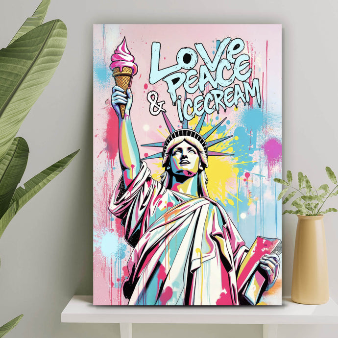 Acrylglasbild Freiheitsstatue mit Ice Cream im Pop Art Stil Hochformat