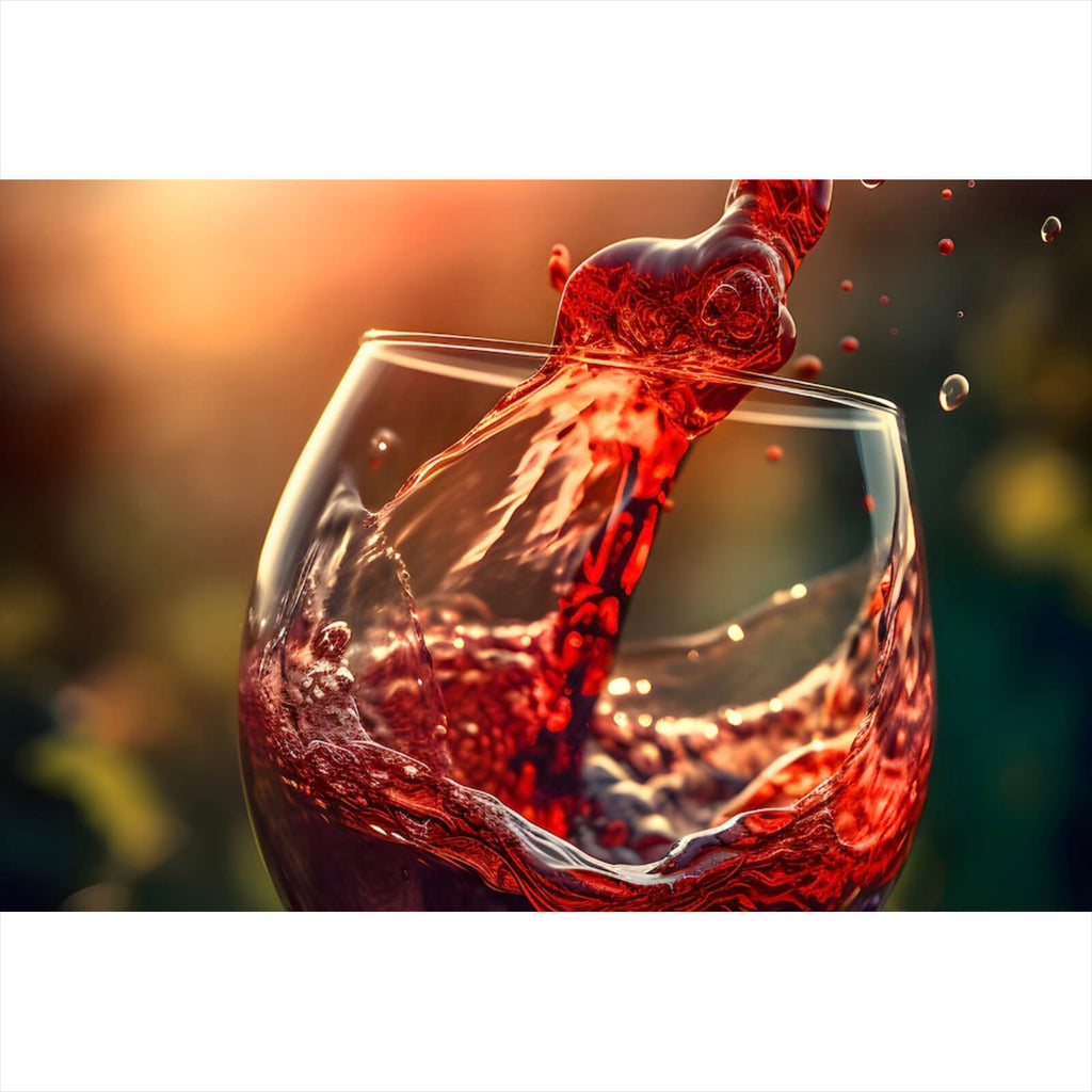 Dieses beeindruckende Wandbild zeigt ein edles Weinglas, das mit einem lebendigen Strahl Wein gefüllt wird, während im Vordergrund frische Trauben prachtvoll inszeniert sind. Die Szene strahlt eine luxuriöse und entspannende Atmosphäre aus, die perfekt für Genießer und Liebhaber des feinen Lebensstils geeignet ist. Der Moment, in dem der Wein in das Glas fließt, fängt die Essenz von Genuss und Eleganz ein und lädt den Betrachter ein, die Kunst des Weins zu schätzen. Die Detailgenauigkeit im Bild ist faszinierend und sorgt dafür, dass jedes Element lebendig wirkt, sei es die glänzenden Trauben oder das Schimmern des Weins. Diese Komposition eignet sich perfekt als stilvolle Dekoration für Küchen, Esszimmer oder Bars und bietet eine raffinierte Möglichkeit, den Raum mit einem Hauch von Kulinarik und Natur zu bereichern. Die Fotokunst bringt nicht nur eine warme und einladende Stimmung in den Raum, sondern inspiriert auch zu einem Moment der Entspannung und des Genusses. Die harmonische Verbindung von Natur und Genuss macht dieses Bild zu einem idealen Accessoire für jeden, der Wert auf Ästhetik und Stil legt.
