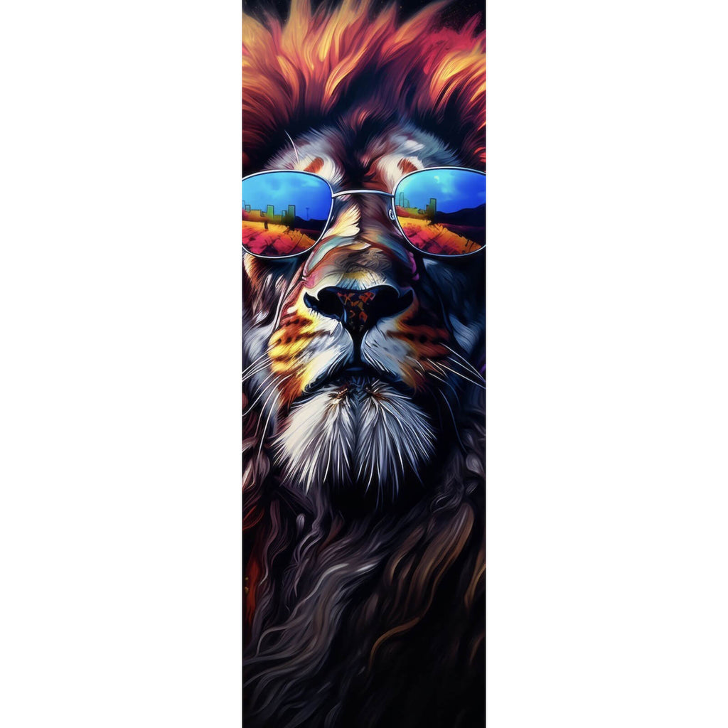 Auf der Suche nach einem ausgefallenen Wandbild als Acrylglasbild? Das Motiv Löwe mit Sonnenbrille und bunte Mähne im Panorama Hoch gefällt dir und du hast nach Wandbildern mit den Wörtern Löwe, Sonnenbrille, Tier, Brille, Tierkunst, Mähne, Modern Art und Urban gesucht? Dann ist dieses Acrylglasbild in der Farbe Bunt genau das richtige Wandbild und Dekorelement für dich! Setze ein Highlight an deiner Wand! Das Acrylglasbild Löwe mit Sonnenbrille und bunte Mähne ist in 3 verschiedenen Größen verfügbar, von klein und dezent bis hin zum XXL Acrylglasbild.