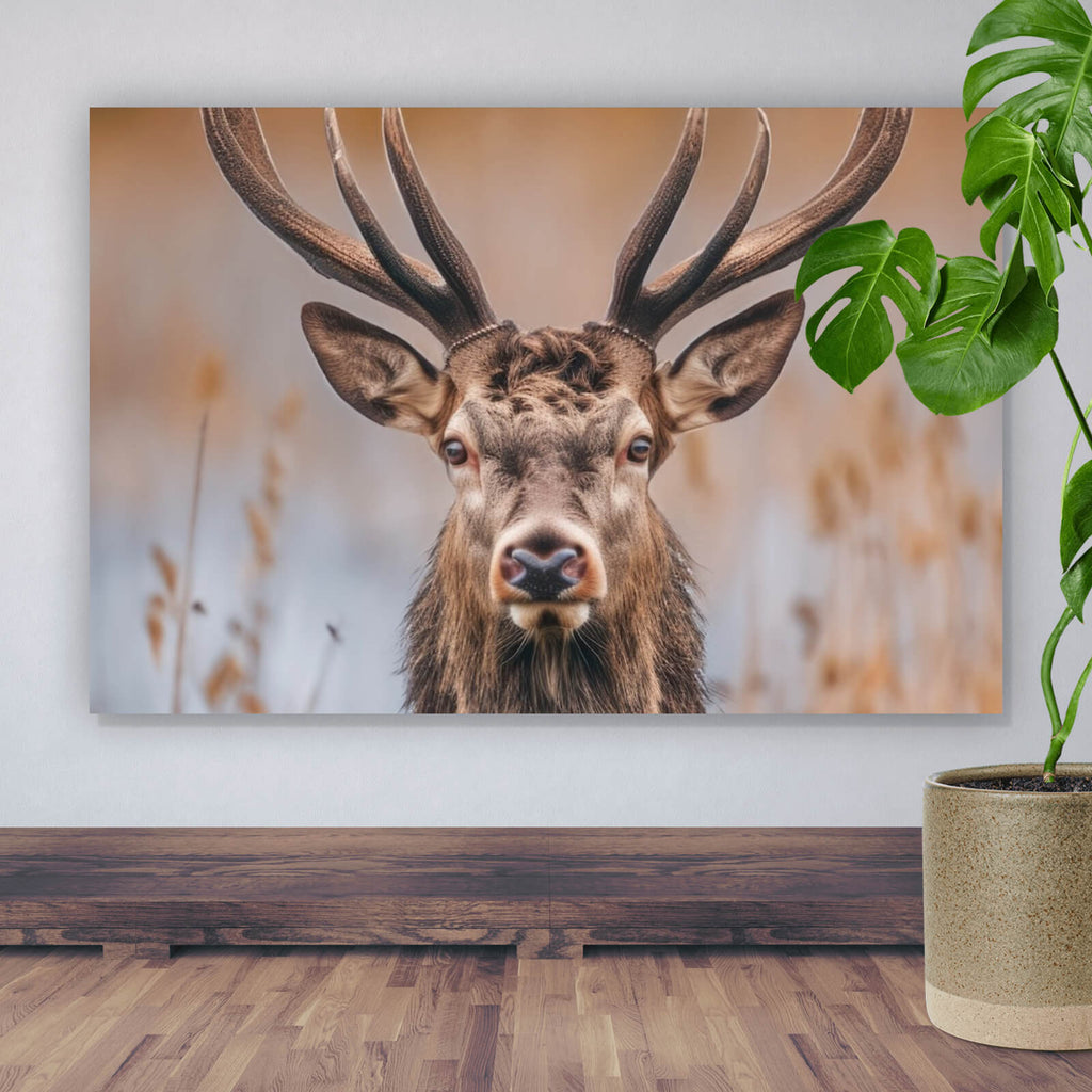 Dieses beeindruckende Wandbild zeigt einen majestätischen Hirsch mit einem prächtigen Geweih, der in seiner natürlichen Umgebung steht. Die Darstellung des Tieres vermittelt ein Gefühl von Ruhe und Eleganz, das perfekt in jeden Raum passt, der eine Verbindung zur Natur sucht. Die Details des Fells und des Geweihs sind sorgfältig herausgearbeitet, was dem Bild eine realistische und lebendige Ausstrahlung verleiht. Der Hintergrund, der sanft verschwommen ist, hebt den Hirsch hervor und verleiht dem Bild Tiefe und Dimension. Diese kunstvolle Fotografie fängt die Essenz der Wildnis ein und bringt sie in Ihr Zuhause, Büro oder Praxis. Es ist ideal für diejenigen, die eine stilvolle und dennoch natürliche Dekoration wünschen, die sowohl entspannend als auch inspirierend wirkt. Die harmonische Komposition und die ruhige Ausstrahlung des Bildes machen es zu einem perfekten Stück für Wohnzimmer oder Schlafzimmer, wo es zur Entspannung beitragen kann. Es ist ein Stück, das sowohl in modernen als auch in klassischen Einrichtungsstilen gut zur Geltung kommt und jedem Raum eine besondere Note verleiht.