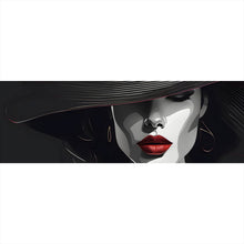 Auf der Suche nach einem ausgefallenen Wandbild als Leinwandbild? Das Motiv Elegantes Frauengesicht Grafikdesign im Panorama gefällt dir und du hast nach Wandbildern mit den Wörtern Kunst, Modern, Design, Eleganz, Hut, Schönheit, Gesicht, Model, Frau, Mode und Grafikdesign gesucht? Dann ist dieses Leinwandbild in den Farben Schwarz-Weiß und Rot genau das richtige Wandbild und Dekorelement für dich! Setze ein Highlight an deiner Wand! Das Leinwandbild Elegantes Frauengesicht Grafikdesign ist in 4 verschiedenen Größen verfügbar, von klein und dezent bis hin zum XXL Leinwandbild.