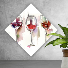 • Lade das Bild in den Galerie-Viewer, Leinwandbild Weingläser Aquarell Raute