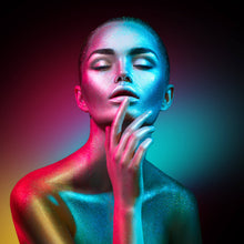 • Lade das Bild in den Galerie-Viewer, Poster Frau im bunten Neonlicht Quadrat