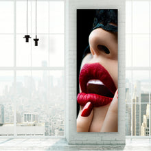 Auf der Suche nach einem ausgefallenen Wandbild als Poster? Das Motiv Frau mit Spitzen Maske im Panorama Hoch gefällt dir und du hast nach Wandbildern mit den Wörtern Spitze, Frau, Lippen, Fetisch, Erotik, Schönheit, Make Up und Sexy gesucht? Dann ist dieses Poster in den Farben Schwarz und Rot genau das richtige Wandbild und Dekorelement für dich! Setze ein Highlight an deiner Wand! Das Poster Frau mit Spitzen Maske ist in 3 verschiedenen Größen verfügbar, von klein und dezent bis hin zum XXL Poster.