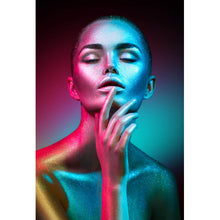 Auf der Suche nach einem ausgefallenen Wandbild als Spannrahmenbild? Das Motiv Frau im bunten Neonlicht im Hochformat gefällt dir und du hast nach Wandbildern mit den Wörtern Frau, Gesicht, Neon, Glänzend, Sexy, Beauty, Makeup, Portrait, Erotik, Romantik, Lippen, Schönheit und Luxuriös gesucht? Dann ist dieses Spannrahmenbild in den Farben Blau und Pink genau das richtige Wandbild und Dekorelement für dich! Setze ein Highlight an deiner Wand! Das Spannrahmenbild Frau im bunten Neonlicht ist in 5 verschiedenen Größen verfügbar, von klein und dezent bis hin zum XXL Spannrahmenbild.