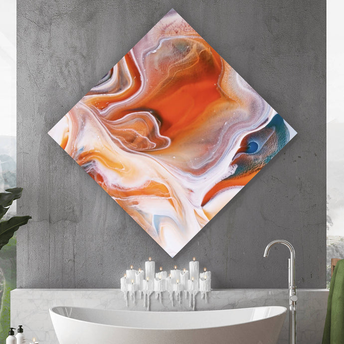 Aluminiumbild Fluid Art Pastell mit Gold Raute