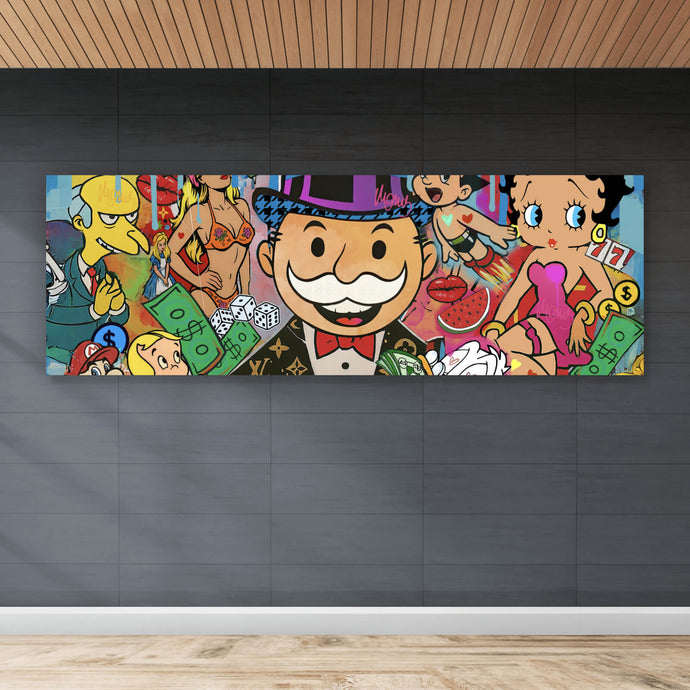 Aluminiumbild gebürstet Bunte Monopoly Collage Pop Art Hochformat
