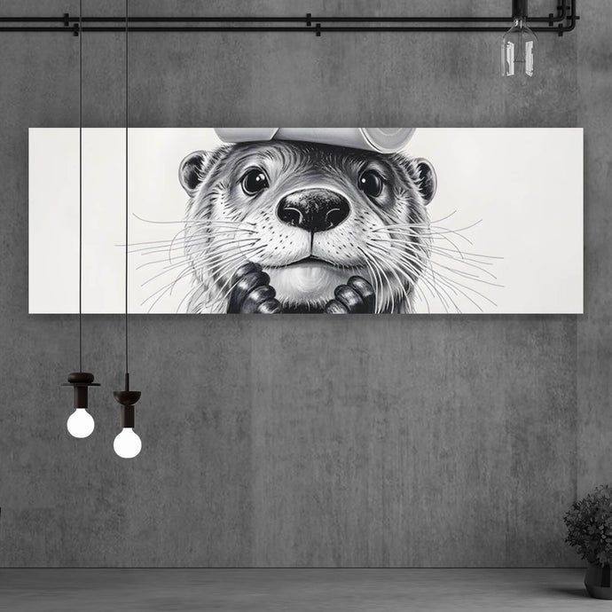 Aluminiumbild gebürstet Niedlicher Otter balanciert Toilettenpapier auf dem Kopf Raute