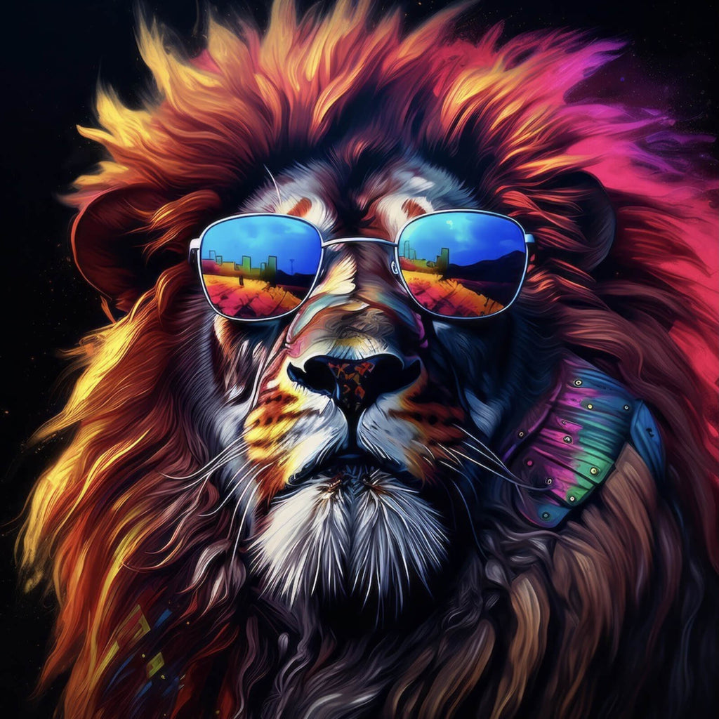 - Motivname: Löwe mit Sonnenbrille und bunte Mähne