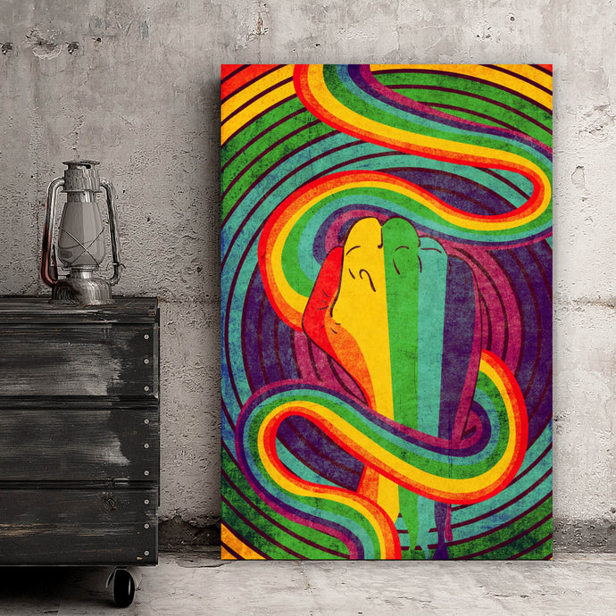 Aluminiumbild Geballte Faust Regenbogenfarben Hochformat