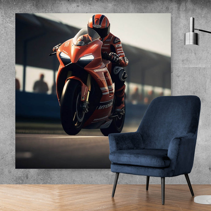Aluminiumbild Motorradfahrer auf Rennstrecke bei hoher Geschwindigkeit Raute