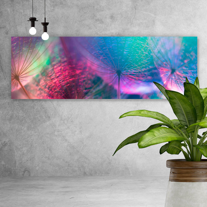 Aluminiumbild Pusteblumen in bunten Pastellfarben Panorama