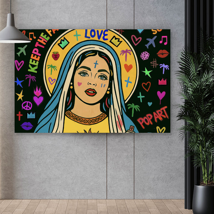 Aluminiumbild Heilige Maria als buntes Pop Art Querformat