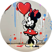 • Lade das Bild in den Galerie-Viewer, Aluminiumbild gebürstet Mädchen mit Herz und Comic Maus Kreis