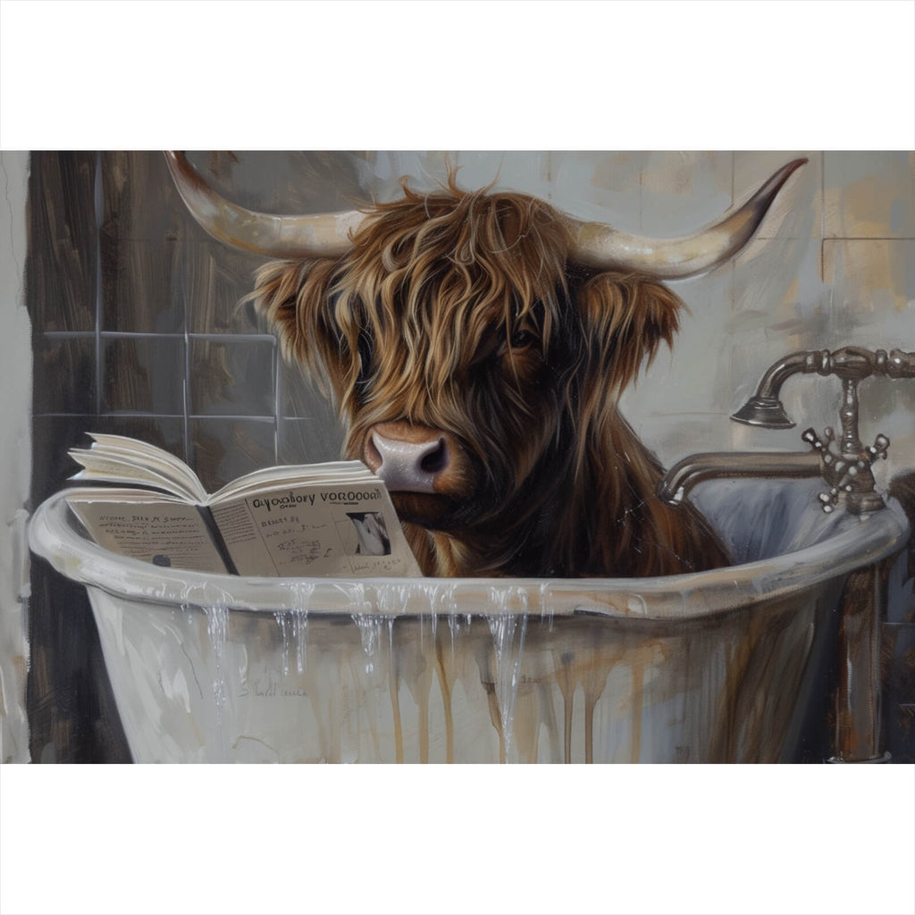 - Motivname: Lesendes Hochland Rind in der Badewanne
