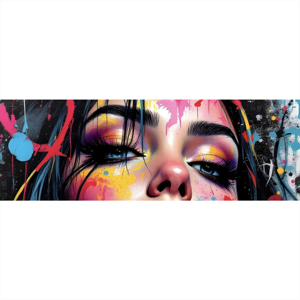 Auf der Suche nach einem ausgefallenen Wandbild als Leinwandbild? Das Motiv Buntes Frauenporträt im Panorama gefällt dir und du hast nach Wandbildern mit den Wörtern Frau, Porträt, Gesicht, Graffiti, Ausdruck, Kreativ, Inspiration, Blick und Pop Art gesucht? Dann ist dieses Leinwandbild in der Farbe Bunt genau das richtige Wandbild und Dekorelement für dich! Setze ein Highlight an deiner Wand! Das Leinwandbild Buntes Frauenporträt ist in 4 verschiedenen Größen verfügbar, von klein und dezent bis hin zum XXL Leinwandbild.