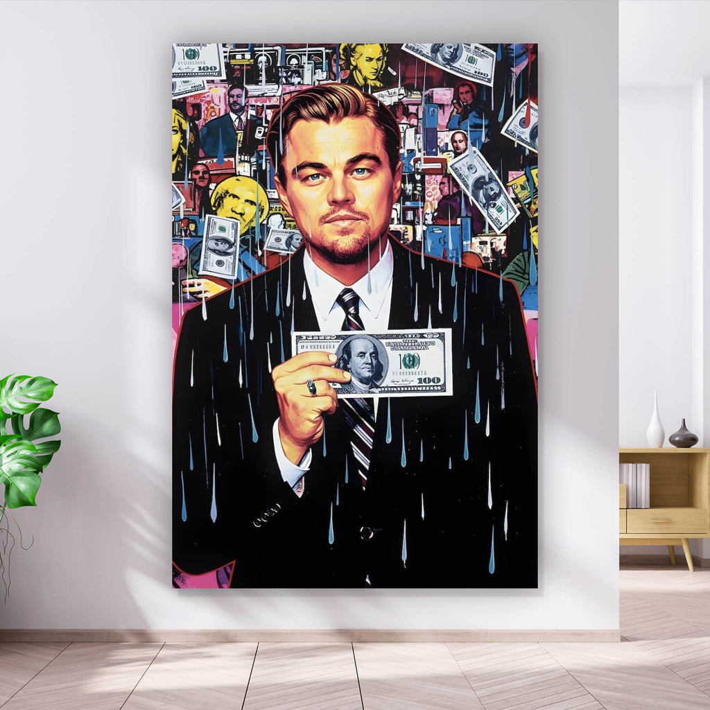 Auf der Suche nach einem ausgefallenen Wandbild als Leinwandbild? Das Motiv Leonardo mit Geldschein vor buntem Hintergrund im Hochformat gefällt dir und du hast nach Wandbildern mit den Wörtern Leonardo, Wallstreet, Geld, Dollar, Pop-Art, Portrait, Anzug, Kunst, Farben, Collage, Illustration, Design, Gesicht, Banknoten, Benjamins, Kreativität, Ausdruck, Reichtum, Börse und Aktien gesucht? Dann ist dieses Leinwandbild in der Farbe Bunt genau das richtige Wandbild und Dekorelement für dich! Setze ein Highlight an deiner Wand! Das Leinwandbild Leonardo mit Geldschein vor buntem Hintergrund ist in 5 verschiedenen Größen verfügbar, von klein und dezent bis hin zum XXL Leinwandbild.