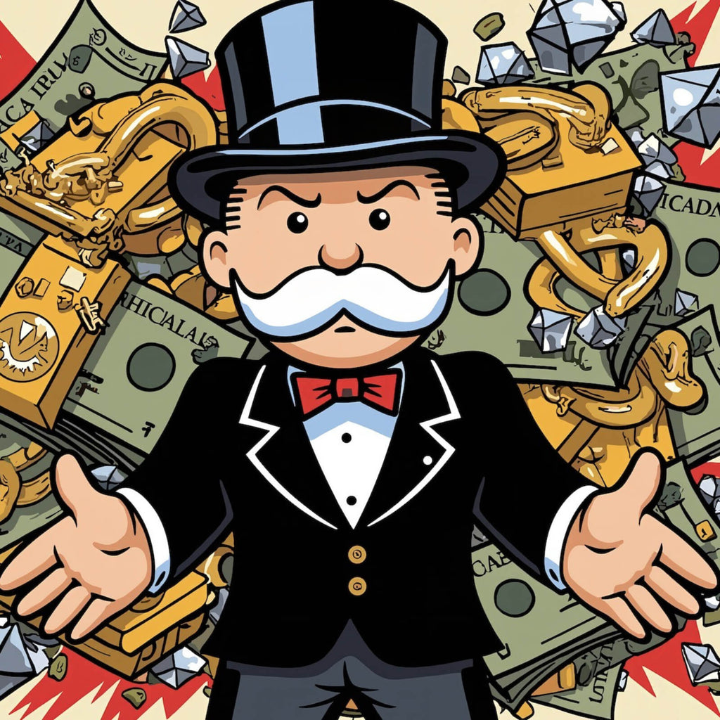 Dieses beeindruckende Wandbild zeigt eine ikonische Figur, die mit ihrem markanten Zylinder und Schnurrbart inmitten von Geldscheinen und Diamanten dargestellt ist. Das Motiv vermittelt ein starkes Gefühl von Reichtum und Wohlstand, das sowohl inspirierend als auch provokant wirken kann. Die Darstellung ist im Pop Art Stil gehalten, was dem Bild eine moderne und dynamische Note verleiht. Die Verwendung von klaren Linien und kräftigen Formen sorgt für eine ausdrucksstarke Optik, die in jedem Raum zum Blickfang wird. Die Kombination aus der bekannten Figur und den Symbolen für Geld und Luxus spricht Themen wie Erfolg, Geschäftssinn und finanzielle Freiheit an. Dieses Kunstwerk eignet sich hervorragend als dekoratives Element in Räumen, die ein Gefühl von Prestige und Inspiration ausstrahlen sollen, wie etwa in Büros oder Wohnzimmern. Es kann auch in einer Bar oder gastronomischen Einrichtung eingesetzt werden, um eine Atmosphäre von Eleganz und Exklusivität zu schaffen. Die Materialanmutung des Bildes lässt auf eine hochwertige Drucktechnik schließen, die die Details und die Tiefe des Motivs optimal zur Geltung bringt. Das Bild wirkt durch seine Komposition und die symbolischen Elemente motivierend und könnte als tägliche Inspiration für den eigenen Erfolg dienen.