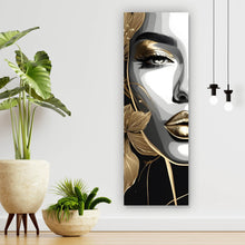 Auf der Suche nach einem ausgefallenen Wandbild als Acrylglasbild? Das Motiv Frau im Zeichenstil mit Gold im Panorama Hoch gefällt dir und du hast nach Wandbildern mit den Wörtern Digital Art, Fantasie, Frau, Gold, Zeichenstil und Blüten gesucht? Dann ist dieses Acrylglasbild in den Farben Weiß, Schwarz, Beige und Gold genau das richtige Wandbild und Dekorelement für dich! Setze ein Highlight an deiner Wand! Das Acrylglasbild Frau im Zeichenstil mit Gold ist in 4 verschiedenen Größen verfügbar, von klein und dezent bis hin zum XXL Acrylglasbild.