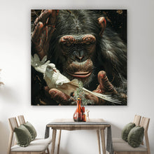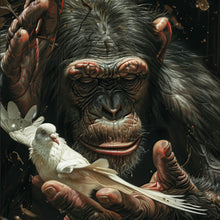 - Motivname: Schimpanse hält sanft eine weiße Taube