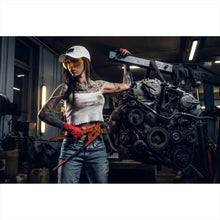 - Motivname: Tätowierte Mechanikerin beim Schrauben