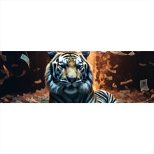 Auf der Suche nach einem ausgefallenen Wandbild als Acrylglasbild? Das Motiv Tiger schwimmt in Geldscheinen im Panorama gefällt dir und du hast nach Wandbildern mit den Wörtern Tiger, Reichtum, Macht, Raubkatze, Banknoten, Fantasie, Geldscheine, Dominanz, Geld, Motivation und Erfolg gesucht? Dann ist dieses Acrylglasbild in den Farben Schwarz, Weiß, Blau und Orange genau das richtige Wandbild und Dekorelement für dich! Setze ein Highlight an deiner Wand! Das Acrylglasbild Tiger schwimmt in Geldscheinen ist in 3 verschiedenen Größen verfügbar, von klein und dezent bis hin zum XXL Acrylglasbild.