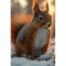 - Motivname: Eichhörnchen im verschneiten goldenen Morgenlicht