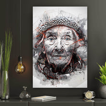 Auf der Suche nach einem ausgefallenen Wandbild als Aluminiumbild gebürstet? Das Motiv Ausdrucksstarkes Porträt einer älteren Frau künstlerisch gestaltet im Hochformat gefällt dir und du hast nach Wandbildern mit den Wörtern Porträt, Kunst, Zeichnung, Gesicht, Ausdruck, Detail, Emotion, Textur, Schwarz-Weiß, Rotakzente, Kreativ, Charakter, Erfahrung, Weisheit, Blick, Alter, Mensch, Frau, Oma und Ältere Frau gesucht? Dann ist dieses Aluminiumbild gebürstet in den Farben Weiß, Schwarz, Grau und Rot genau das richtige Wandbild und Dekorelement für dich! Setze ein Highlight an deiner Wand! Das Aluminiumbild gebürstet Ausdrucksstarkes Porträt einer älteren Frau künstlerisch gestaltet ist in 4 verschiedenen Größen verfügbar, von klein und dezent bis hin zum XXL Aluminiumbild gebürstet.