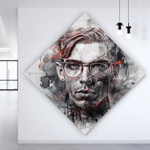 Auf der Suche nach einem ausgefallenen Wandbild als Aluminiumbild gebürstet? Das Motiv Ausdrucksstarkes Porträt eines jungen Mannes künstlerisch gestaltet als Raute gefällt dir und du hast nach Wandbildern mit den Wörtern Porträt, Kunst, Illustration, Linien, Farben, Brille, Gesicht, Detail, Kreativität, Modern, Struktur, Ausdruck, Künstlerisch, Dynamisch, Stil, Skizze, Zeichnung, Mann und Junger Mann gesucht? Dann ist dieses Aluminiumbild gebürstet in den Farben Weiß, Schwarz, Grau und Rot genau das richtige Wandbild und Dekorelement für dich! Setze ein Highlight an deiner Wand! Das Aluminiumbild gebürstet Ausdrucksstarkes Porträt eines jungen Mannes künstlerisch gestaltet ist in 4 verschiedenen Größen verfügbar, von klein und dezent bis hin zum XXL Aluminiumbild gebürstet.