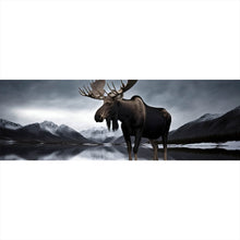 Auf der Suche nach einem ausgefallenen Wandbild als Aluminiumbild gebürstet? Das Motiv Berglandschaft mit See und Elch in Abendstimmung im Panorama gefällt dir und du hast nach Wandbildern mit den Wörtern Elch, Berge, See, Wasser, Dämmerung, Wildtier, Natur, Schnee, Ruhe, Landschaft, Stille, Abend, Geweih und Wildnis gesucht? Dann ist dieses Aluminiumbild gebürstet in den Farben Schwarz, Weiß, Blau und Grau genau das richtige Wandbild und Dekorelement für dich! Setze ein Highlight an deiner Wand! Das Aluminiumbild gebürstet Berglandschaft mit See und Elch in Abendstimmung ist in 4 verschiedenen Größen verfügbar, von klein und dezent bis hin zum XXL Aluminiumbild gebürstet.