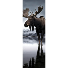 • Lade das Bild in den Galerie-Viewer, Aluminiumbild gebürstet Berglandschaft mit See und Elch in Abendstimmung Panorama Hoch