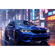 - Motivname: Blauer Sportwagen bei Nacht in der Stadt