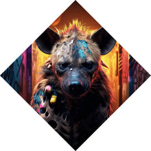 Auf der Suche nach einem ausgefallenen Wandbild als Aluminiumbild gebürstet? Das Motiv Bunte Hyäne im Street Art Stil als Raute gefällt dir und du hast nach Wandbildern mit den Wörtern Modern, Fantasie, Hyäne, Wildtier, Graffiti, Neon, Urban, Street Art, Gasse und Nacht gesucht? Dann ist dieses Aluminiumbild gebürstet in der Farbe Bunt genau das richtige Wandbild und Dekorelement für dich! Setze ein Highlight an deiner Wand! Das Aluminiumbild gebürstet Bunte Hyäne im Street Art Stil ist in 4 verschiedenen Größen verfügbar, von klein und dezent bis hin zum XXL Aluminiumbild gebürstet.