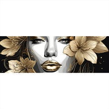 Auf der Suche nach einem ausgefallenen Wandbild als Aluminiumbild gebürstet? Das Motiv Frau im Zeichenstil mit Gold im Panorama gefällt dir und du hast nach Wandbildern mit den Wörtern Digital Art, Fantasie, Frau, Gold, Zeichenstil und Blüten gesucht? Dann ist dieses Aluminiumbild gebürstet in den Farben Weiß, Schwarz, Beige und Gold genau das richtige Wandbild und Dekorelement für dich! Setze ein Highlight an deiner Wand! Das Aluminiumbild gebürstet Frau im Zeichenstil mit Gold ist in 3 verschiedenen Größen verfügbar, von klein und dezent bis hin zum XXL Aluminiumbild gebürstet.