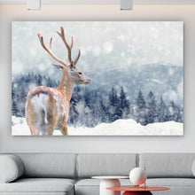 • Lade das Bild in den Galerie-Viewer, Aluminiumbild gebürstet Hirsch im Winter Querformat