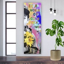 Auf der Suche nach einem ausgefallenen Wandbild als Aluminiumbild gebürstet? Das Motiv Junge mit Blumen vor buntem Hintergrund im Panorama Hoch gefällt dir und du hast nach Wandbildern mit den Wörtern Junge, Blumen, Hoffnung, Frieden, Zitat, Kunst, Farbe, Kappe, Botschaft, Optimismus, Kontrast, Grafik, Inspiration, Kind, Mütze und PopArt gesucht? Dann ist dieses Aluminiumbild gebürstet in der Farbe Bunt genau das richtige Wandbild und Dekorelement für dich! Setze ein Highlight an deiner Wand! Das Aluminiumbild gebürstet Junge mit Blumen vor buntem Hintergrund ist in 4 verschiedenen Größen verfügbar, von klein und dezent bis hin zum XXL Aluminiumbild gebürstet.