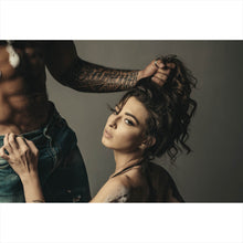 Das gebürstete Aluminiumbild Junges Paar in erotischer Pose im Querformat hat eine matte Oberfläche und wird direkt auf eine 3 mm starke gebürstete Aluminium Verbundplatte digital gedruckt. Wandbilder im Edelstahl Look wirken besonders edel, da die gebürstete, metallisch anmutende Oberfläche hindurchscheint. Bei weißen und hellen Stellen kommt dieser metallische Effekt noch besser zur Geltung, da Weiß nicht gedruckt wird und das charakteristische Aluminium somit komplett sichtbar ist. Unsere Aluminiumbilder haben einen Kern aus schwarzem Polyethylen, der von beiden Seiten mit einer 0,3 mm starken Aluminiumschicht überzogen und matt gebürstet ist. Gegenüber Material aus reinem Aluminium verfügen unsere Aluminiumplatten über ein deutlich geringeres Gewicht, was die Montage stark vereinfacht. Wandbilder im Alu Look sind wasserfest und auch für den Außenbereich geeignet. Gebürstete Aluminiumbilder, die auch nach Jahren noch wie neu aussehen und strahlen.
