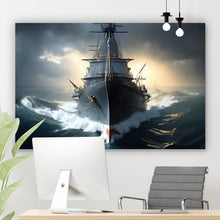Auf der Suche nach einem ausgefallenen Wandbild als Aluminiumbild gebürstet? Das Motiv Kriegsschiff auf stürmischem Ozean im Querformat gefällt dir und du hast nach Wandbildern mit den Wörtern Modern, Schiff, Boot, Krieg, Meer, See, Welle, Ozean, Marine, Sturm und Dramatik gesucht? Dann ist dieses Aluminiumbild gebürstet in den Farben Schwarz, Blau, Grau und Weiß genau das richtige Wandbild und Dekorelement für dich! Setze ein Highlight an deiner Wand! Das Aluminiumbild gebürstet Kriegsschiff auf stürmischem Ozean ist in 5 verschiedenen Größen verfügbar, von klein und dezent bis hin zum XXL Aluminiumbild gebürstet.
