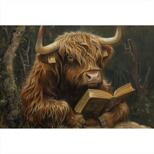 - Motivname: Lesendes Hochlandrind im Wald
