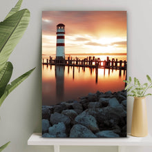 - Motivname: Leuchtturm am Meer in der Abenddämmerung