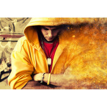 Auf der Suche nach einem ausgefallenen Wandbild als Aluminiumbild gebürstet? Das Motiv Mann mit Kapuzenpulli im Querformat gefällt dir und du hast nach Wandbildern mit den Wörtern Mann, Mode, Hoodie, Graffiti, Street Style und Hiphop gesucht? Dann ist dieses Aluminiumbild gebürstet in der Farbe Gelb genau das richtige Wandbild und Dekorelement für dich! Setze ein Highlight an deiner Wand! Das Aluminiumbild gebürstet Mann mit Kapuzenpulli ist in 5 verschiedenen Größen verfügbar, von klein und dezent bis hin zum XXL Aluminiumbild gebürstet.