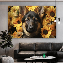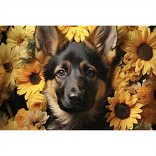 - Motivname: Niedlicher Schäferhund umgeben von gelben Blumen