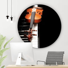 Auf der Suche nach einem ausgefallenen Wandbild als Aluminiumbild? Das Motiv Geige auf Klaviertasten als Kreis gefällt dir und du hast nach Wandbildern mit den Wörtern Geige, Klavier, Musik, Klassik, Instrumente, Harmonie, Saiteninstrument, Tasteninstrument, Symphonie, Konzert, Melodie, Akustik, Komposition und Musiker gesucht? Dann ist dieses Aluminiumbild in den Farben Weiß, Schwarz und Braun genau das richtige Wandbild und Dekorelement für dich! Setze ein Highlight an deiner Wand! Das Aluminiumbild Geige auf Klaviertasten ist in 5 verschiedenen Größen verfügbar, von klein und dezent bis hin zum XXL Aluminiumbild.