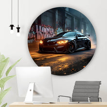 Auf der Suche nach einem ausgefallenen Wandbild als Aluminiumbild? Das Motiv Sportwagen vor Graffiti Wand als Kreis gefällt dir und du hast nach Wandbildern mit den Wörtern Sportwagen, Graffiti, Urban, Nacht, Beleuchtung, Straße, Auto, Tuning, Nebel, Architektur, Industriell, Modern, Fahrzeug, Geschwindigkeit, Design, Nachtfahrt, Halle, Automobil und Scheinwerfer gesucht? Dann ist dieses Aluminiumbild in den Farben Schwarz, Grau, Orange, Pink und Türkis genau das richtige Wandbild und Dekorelement für dich! Setze ein Highlight an deiner Wand! Das Aluminiumbild Sportwagen vor Graffiti Wand ist in 5 verschiedenen Größen verfügbar, von klein und dezent bis hin zum XXL Aluminiumbild.