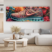 Auf der Suche nach einem ausgefallenen Wandbild als Leinwandbild? Das Motiv Bunter Sneaker in Blumenbett im Panorama gefällt dir und du hast nach Wandbildern mit den Wörtern Sneaker, Turnschuh, Blumen, Boho und Vintage gesucht? Dann ist dieses Leinwandbild in der Farbe Bunt genau das richtige Wandbild und Dekorelement für dich! Setze ein Highlight an deiner Wand! Das Leinwandbild Bunter Sneaker in Blumenbett ist in 3 verschiedenen Größen verfügbar, von klein und dezent bis hin zum XXL Leinwandbild.