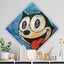 Auf der Suche nach einem ausgefallenen Wandbild als Leinwandbild? Das Motiv Cartoon Katze mit Dollarzeichen und buntem Hintergrund als Raute gefällt dir und du hast nach Wandbildern mit den Wörtern Katze, Pop Art, Street Art, Asiatische Schriftzeichen, Sterne, Dollarzeichen, Humor, Zunge, Comicstil, Cartoonfigur und Retro gesucht? Dann ist dieses Leinwandbild in der Farbe Bunt genau das richtige Wandbild und Dekorelement für dich! Setze ein Highlight an deiner Wand! Das Leinwandbild Cartoon Katze mit Dollarzeichen und buntem Hintergrund ist in 4 verschiedenen Größen verfügbar, von klein und dezent bis hin zum XXL Leinwandbild.