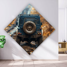 Auf der Suche nach einem ausgefallenen Wandbild als Leinwandbild? Das Motiv Geländewagen fährt auf schlammigen Waldweg als Raute gefällt dir und du hast nach Wandbildern mit den Wörtern Geländewagen, Offroad, Abenteuer, Dreck, Schlamm, Wald, Herbst, Wildnis, Allrad, Auto, Jagd, Erkundung, Fahrzeug und Freiheit gesucht? Dann ist dieses Leinwandbild in den Farben Schwarz, Blau, Braun und Orange genau das richtige Wandbild und Dekorelement für dich! Setze ein Highlight an deiner Wand! Das Leinwandbild Geländewagen fährt auf schlammigen Waldweg ist in 4 verschiedenen Größen verfügbar, von klein und dezent bis hin zum XXL Leinwandbild.