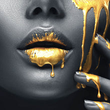 Auf der Suche nach einem ausgefallenen Wandbild als Leinwandbild? Das Motiv Goldene Lippen im Quadrat gefällt dir und du hast nach Wandbildern mit den Wörtern Lippen, Lips, Mund, Sexy, Beauty, Gesicht, Frau, Erotik, Romantik und Gold gesucht? Dann ist dieses Leinwandbild in den Farben Schwarz, Grau und Gold genau das richtige Wandbild und Dekorelement für dich! Setze ein Highlight an deiner Wand! Das Leinwandbild Goldene Lippen ist in 4 verschiedenen Größen verfügbar, von klein und dezent bis hin zum XXL Leinwandbild.